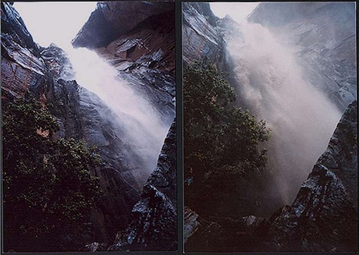 In the photo on the left you’ll see two ropes dangling and also maybe even make out Karl and Tony. The wave that shot out of Behunin that day had enough momentum horizontally to sweep over them as they rappelled down. This episode taught us all a very good lesson.